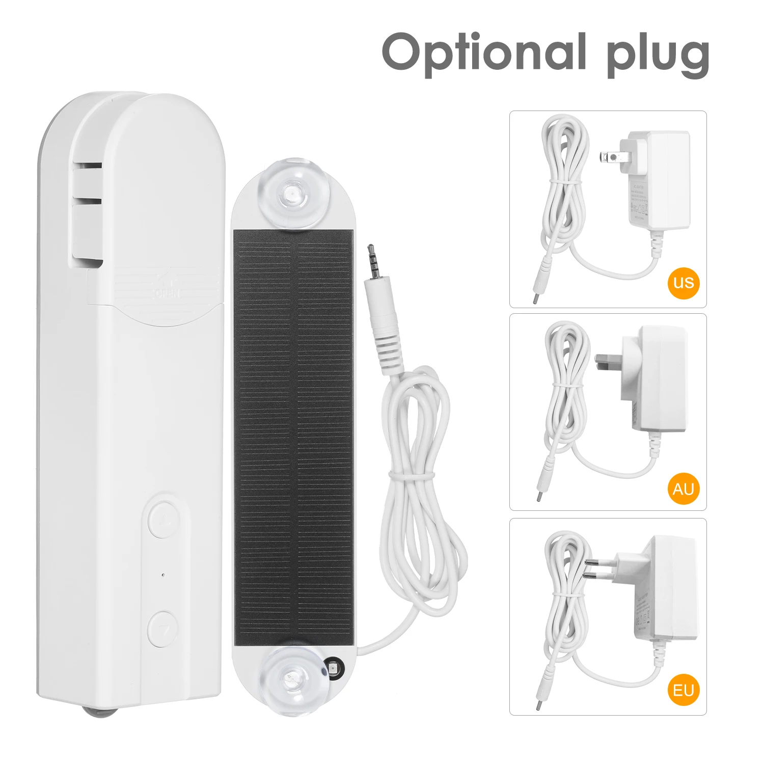 Solar Panel + Plug Power Supply -- 100-240V plug charging and 11V solar panel powered smart chain motor, dual way power supply, never worry about power off.